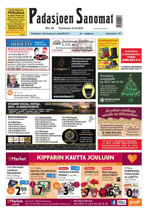 Uutistarjontaa täydentää viikon mittaan myös verkkolehti osoitteessa: www.padasjoensanomat.fi