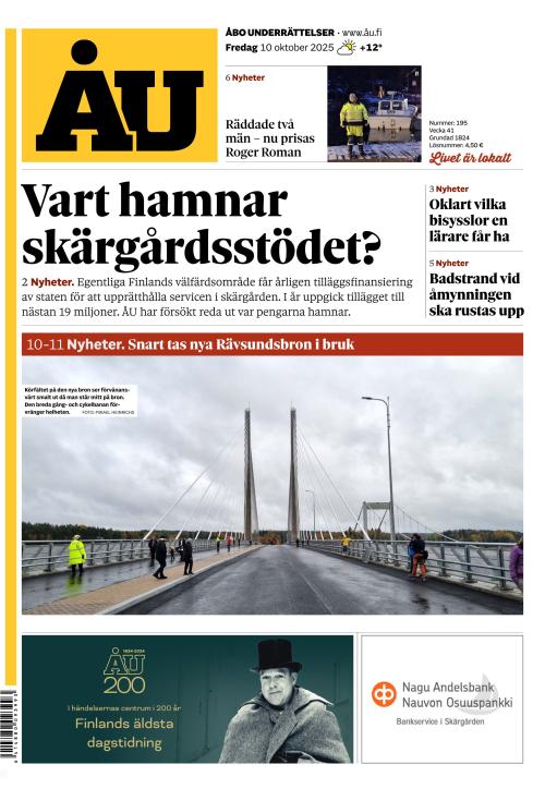 Den svenskspråkiga dagstidningen i Åbo och Åboland. På vår webb åu.fi levererar vi nyheter varje dag, 7 dagar i veckan.
