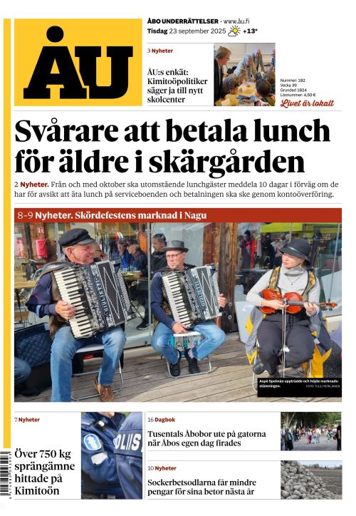 Den svenskspråkiga dagstidningen i Åbo och Åboland. På vår webb åu.fi levererar vi nyheter varje dag, 7 dagar i veckan.
