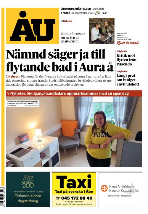 Den svenskspråkiga dagstidningen i Åbo och Åboland. På vår webb åu.fi levererar vi nyheter varje dag, 7 dagar i veckan.