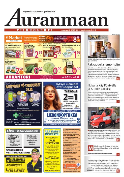 Auranmaan Viikkolehti on puoluepoliittisesti sitoutumaton, elämää ja uutisia monipuolisesti ja ihmisläheisesti valottava paikallislehti. Ilmestymme tiistaisin ja perjantaisin.