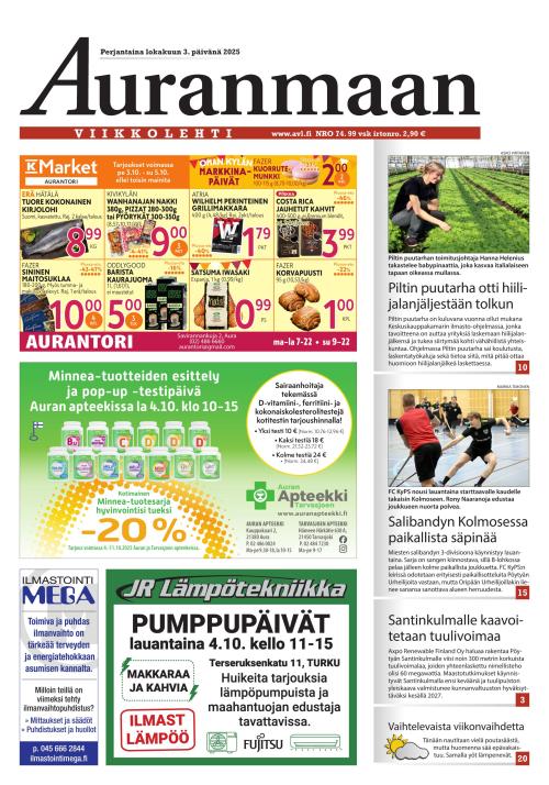 Auranmaan Viikkolehti on puoluepoliittisesti sitoutumaton, elämää ja uutisia monipuolisesti ja ihmisläheisesti valottava paikallislehti. Ilmestymme tiistaisin ja perjantaisin.