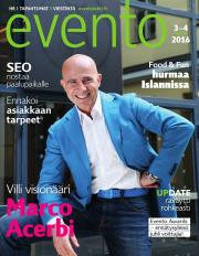 Villi visionääri Marco Acerbi on tapahtumaviihteen monitaituri. Tuija Seipell muovaa valittajasta välittäjän. Turvallisuus tarvelistan kärkipäähän. Näin saat no-show'n nollaan. Hakukoneoptimointi vie yrityksesi paalupaikalle. Islannin hurmaava promoottori Food&Fun. Kymmenen syytä vierailla ammattimessuilla. Ostopäätös tehdään tunteella. Update-päivä räväytti rohkeasti, loi yhteenkuuluvuutta ja inspiroi. Evento Awardsissa veti ennätysyleisön paikalle.
