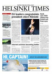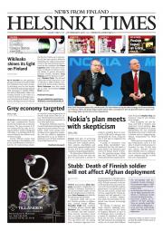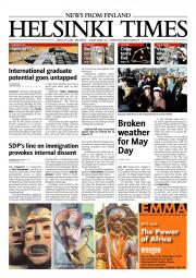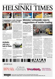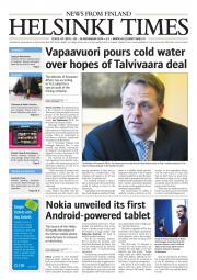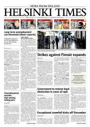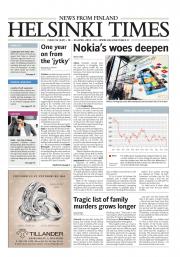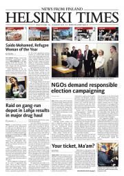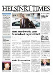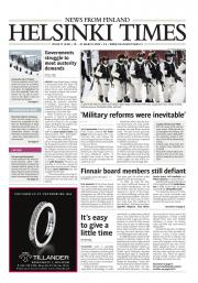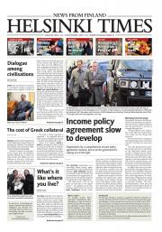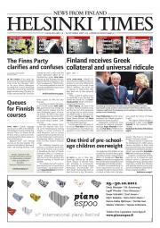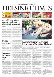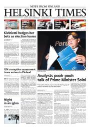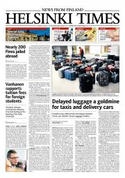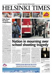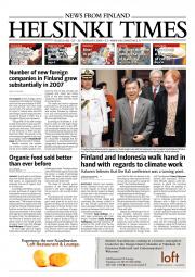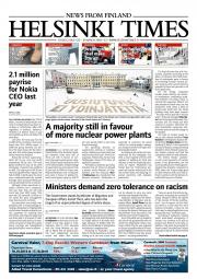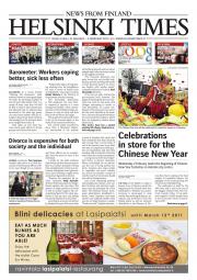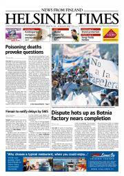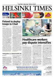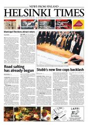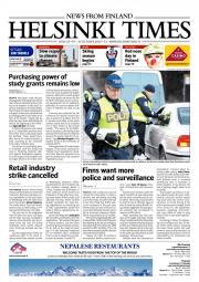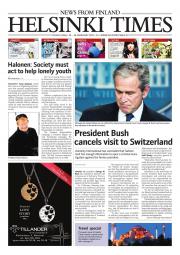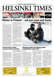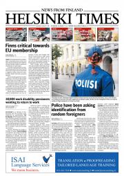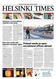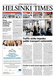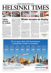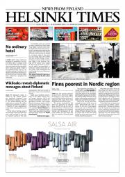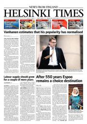 Helsinki Times is the first weekly newspaper in Finland which provides a reliable and much-needed source of news and information about Finland in English. In addition to domestic and international news, it includes a review of Finnish newspapers and magazines, as well as articles concerning Finland published in the international press. Culture, sport and lifestyle sections are also essential parts of the content in Helsinki Times. The newspaper also offers a weekly events guide as well as a weekly selection of TV programmes in English.
