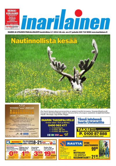 Inarilainen on Inarin ja Utsjoen oma paikallislehti sekä alueen luetuin ja luotetuin media. Paikallislehti on mainoskanava, joka tavoittaa tehokkaimmin alueen kuluttajat ja yritykset. Printtilehti ilmestyy kerran viikossa ja digitaalinen versio mahdollistaa tuoreiden uutisten seuraamisen missä tahansa oletkin.