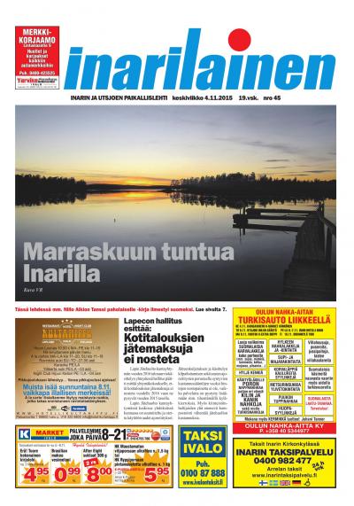 Inarilainen on Inarin ja Utsjoen oma paikallislehti sekä alueen luetuin ja luotetuin media. Paikallislehti on mainoskanava, joka tavoittaa tehokkaimmin alueen kuluttajat ja yritykset. Printtilehti ilmestyy kerran viikossa ja digitaalinen versio mahdollistaa tuoreiden uutisten seuraamisen missä tahansa oletkin.