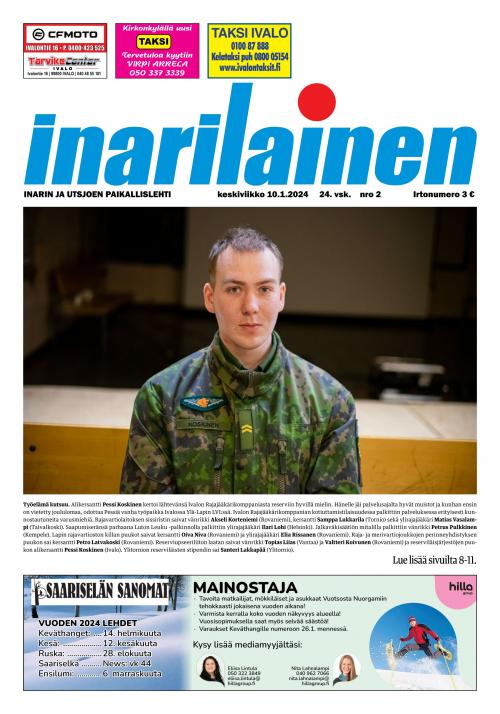 Inarilainen on Inarin ja Utsjoen oma paikallislehti sekä alueen luetuin ja luotetuin media. Paikallislehti on mainoskanava, joka tavoittaa tehokkaimmin alueen kuluttajat ja yritykset. Printtilehti ilmestyy kerran viikossa ja digitaalinen versio mahdollistaa tuoreiden uutisten seuraamisen missä tahansa oletkin.