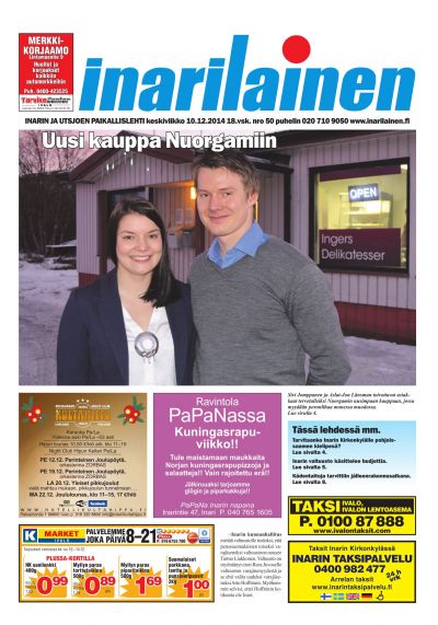 Inarilainen on Inarin ja Utsjoen oma paikallislehti sekä alueen luetuin ja luotetuin media. Paikallislehti on mainoskanava, joka tavoittaa tehokkaimmin alueen kuluttajat ja yritykset. Printtilehti ilmestyy kerran viikossa ja digitaalinen versio mahdollistaa tuoreiden uutisten seuraamisen missä tahansa oletkin.