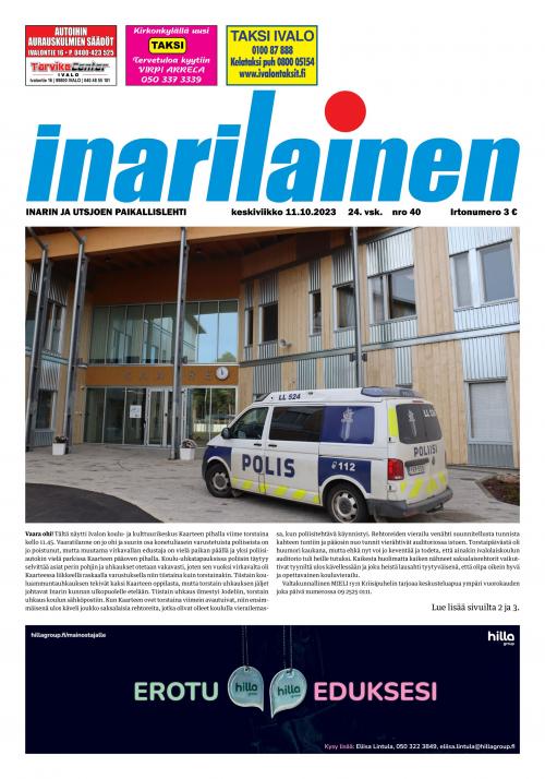 Inarilainen on Inarin ja Utsjoen oma paikallislehti sekä alueen luetuin ja luotetuin media. Paikallislehti on mainoskanava, joka tavoittaa tehokkaimmin alueen kuluttajat ja yritykset. Printtilehti ilmestyy kerran viikossa ja digitaalinen versio mahdollistaa tuoreiden uutisten seuraamisen missä tahansa oletkin.