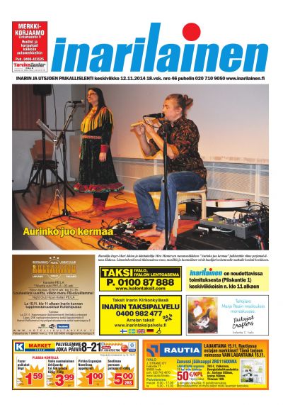 Inarilainen on Inarin ja Utsjoen oma paikallislehti sekä alueen luetuin ja luotetuin media. Paikallislehti on mainoskanava, joka tavoittaa tehokkaimmin alueen kuluttajat ja yritykset. Printtilehti ilmestyy kerran viikossa ja digitaalinen versio mahdollistaa tuoreiden uutisten seuraamisen missä tahansa oletkin.