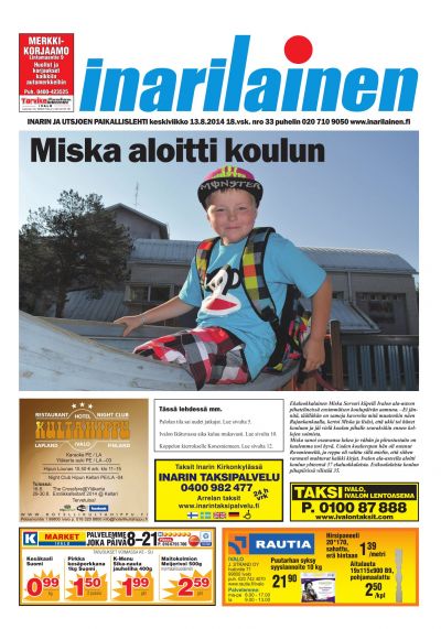 Inarilainen on Inarin ja Utsjoen oma paikallislehti sekä alueen luetuin ja luotetuin media. Paikallislehti on mainoskanava, joka tavoittaa tehokkaimmin alueen kuluttajat ja yritykset. Printtilehti ilmestyy kerran viikossa ja digitaalinen versio mahdollistaa tuoreiden uutisten seuraamisen missä tahansa oletkin.