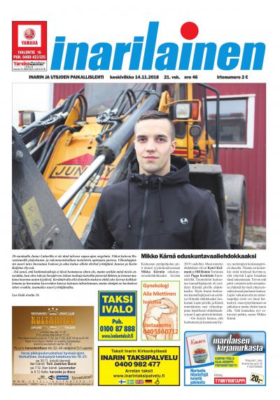Inarilainen on Inarin ja Utsjoen oma paikallislehti sekä alueen luetuin ja luotetuin media. Paikallislehti on mainoskanava, joka tavoittaa tehokkaimmin alueen kuluttajat ja yritykset. Printtilehti ilmestyy kerran viikossa ja digitaalinen versio mahdollistaa tuoreiden uutisten seuraamisen missä tahansa oletkin.