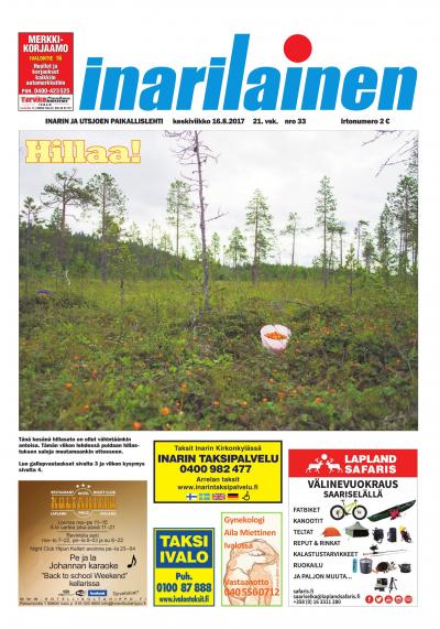 Inarilainen on Inarin ja Utsjoen oma paikallislehti sekä alueen luetuin ja luotetuin media. Paikallislehti on mainoskanava, joka tavoittaa tehokkaimmin alueen kuluttajat ja yritykset. Printtilehti ilmestyy kerran viikossa ja digitaalinen versio mahdollistaa tuoreiden uutisten seuraamisen missä tahansa oletkin.