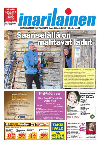 Inarilainen on Inarin ja Utsjoen oma paikallislehti sekä alueen luetuin ja luotetuin media. Paikallislehti on mainoskanava, joka tavoittaa tehokkaimmin alueen kuluttajat ja yritykset. Printtilehti ilmestyy kerran viikossa ja digitaalinen versio mahdollistaa tuoreiden uutisten seuraamisen missä tahansa oletkin.
