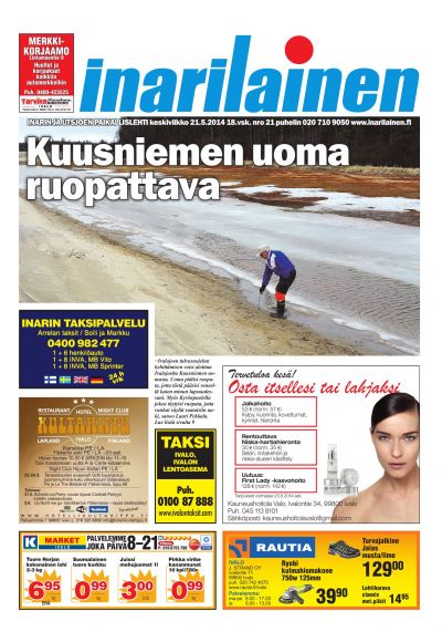 Inarilainen on Inarin ja Utsjoen oma paikallislehti sekä alueen luetuin ja luotetuin media. Paikallislehti on mainoskanava, joka tavoittaa tehokkaimmin alueen kuluttajat ja yritykset. Printtilehti ilmestyy kerran viikossa ja digitaalinen versio mahdollistaa tuoreiden uutisten seuraamisen missä tahansa oletkin.