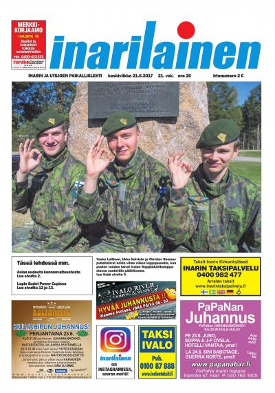 Inarilainen on Inarin ja Utsjoen oma paikallislehti sekä alueen luetuin ja luotetuin media. Paikallislehti on mainoskanava, joka tavoittaa tehokkaimmin alueen kuluttajat ja yritykset. Printtilehti ilmestyy kerran viikossa ja digitaalinen versio mahdollistaa tuoreiden uutisten seuraamisen missä tahansa oletkin.