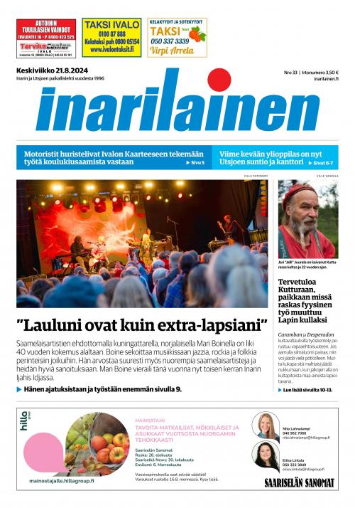 Inarilainen on Inarin ja Utsjoen oma paikallislehti sekä alueen luetuin ja luotetuin media. Paikallislehti on mainoskanava, joka tavoittaa tehokkaimmin alueen kuluttajat ja yritykset. Printtilehti ilmestyy kerran viikossa ja digitaalinen versio mahdollistaa tuoreiden uutisten seuraamisen missä tahansa oletkin.