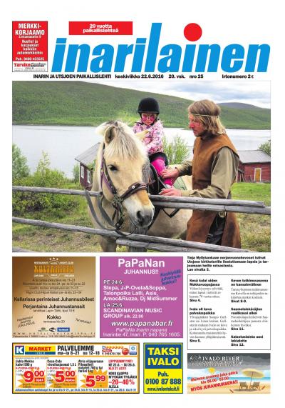 Inarilainen on Inarin ja Utsjoen oma paikallislehti sekä alueen luetuin ja luotetuin media. Paikallislehti on mainoskanava, joka tavoittaa tehokkaimmin alueen kuluttajat ja yritykset. Printtilehti ilmestyy kerran viikossa ja digitaalinen versio mahdollistaa tuoreiden uutisten seuraamisen missä tahansa oletkin.