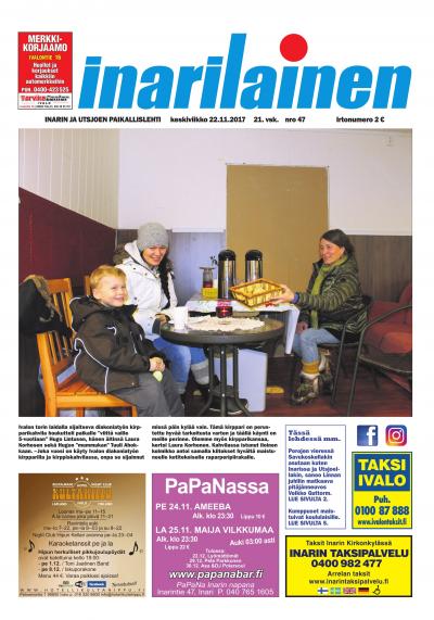 Inarilainen on Inarin ja Utsjoen oma paikallislehti sekä alueen luetuin ja luotetuin media. Paikallislehti on mainoskanava, joka tavoittaa tehokkaimmin alueen kuluttajat ja yritykset. Printtilehti ilmestyy kerran viikossa ja digitaalinen versio mahdollistaa tuoreiden uutisten seuraamisen missä tahansa oletkin.