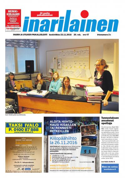 Inarilainen on Inarin ja Utsjoen oma paikallislehti sekä alueen luetuin ja luotetuin media. Paikallislehti on mainoskanava, joka tavoittaa tehokkaimmin alueen kuluttajat ja yritykset. Printtilehti ilmestyy kerran viikossa ja digitaalinen versio mahdollistaa tuoreiden uutisten seuraamisen missä tahansa oletkin.