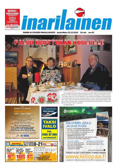 Inarilainen on Inarin ja Utsjoen oma paikallislehti sekä alueen luetuin ja luotetuin media. Paikallislehti on mainoskanava, joka tavoittaa tehokkaimmin alueen kuluttajat ja yritykset. Printtilehti ilmestyy kerran viikossa ja digitaalinen versio mahdollistaa tuoreiden uutisten seuraamisen missä tahansa oletkin.