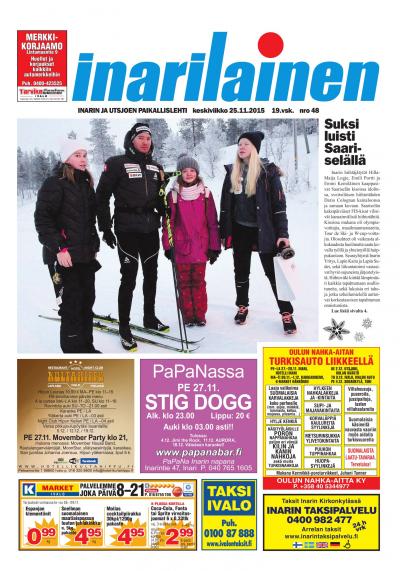 Inarilainen on Inarin ja Utsjoen oma paikallislehti sekä alueen luetuin ja luotetuin media. Paikallislehti on mainoskanava, joka tavoittaa tehokkaimmin alueen kuluttajat ja yritykset. Printtilehti ilmestyy kerran viikossa ja digitaalinen versio mahdollistaa tuoreiden uutisten seuraamisen missä tahansa oletkin.
