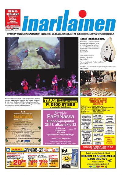 Inarilainen on Inarin ja Utsjoen oma paikallislehti sekä alueen luetuin ja luotetuin media. Paikallislehti on mainoskanava, joka tavoittaa tehokkaimmin alueen kuluttajat ja yritykset. Printtilehti ilmestyy kerran viikossa ja digitaalinen versio mahdollistaa tuoreiden uutisten seuraamisen missä tahansa oletkin.