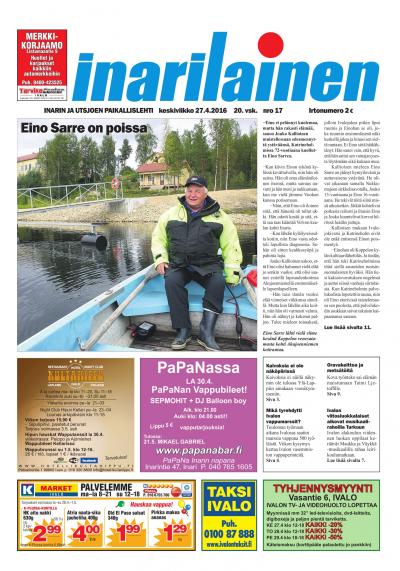 Inarilainen on Inarin ja Utsjoen oma paikallislehti sekä alueen luetuin ja luotetuin media. Paikallislehti on mainoskanava, joka tavoittaa tehokkaimmin alueen kuluttajat ja yritykset. Printtilehti ilmestyy kerran viikossa ja digitaalinen versio mahdollistaa tuoreiden uutisten seuraamisen missä tahansa oletkin.