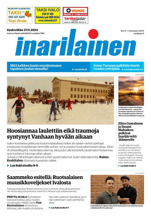 Inarilainen on Inarin ja Utsjoen oma paikallislehti sekä alueen luetuin ja luotetuin media. Paikallislehti on mainoskanava, joka tavoittaa tehokkaimmin alueen kuluttajat ja yritykset. Printtilehti ilmestyy kerran viikossa ja digitaalinen versio mahdollistaa tuoreiden uutisten seuraamisen missä tahansa oletkin.