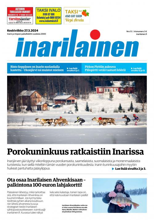 Inarilainen on Inarin ja Utsjoen oma paikallislehti sekä alueen luetuin ja luotetuin media. Paikallislehti on mainoskanava, joka tavoittaa tehokkaimmin alueen kuluttajat ja yritykset. Printtilehti ilmestyy kerran viikossa ja digitaalinen versio mahdollistaa tuoreiden uutisten seuraamisen missä tahansa oletkin.