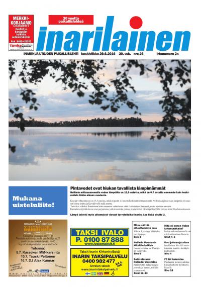 Inarilainen on Inarin ja Utsjoen oma paikallislehti sekä alueen luetuin ja luotetuin media. Paikallislehti on mainoskanava, joka tavoittaa tehokkaimmin alueen kuluttajat ja yritykset. Printtilehti ilmestyy kerran viikossa ja digitaalinen versio mahdollistaa tuoreiden uutisten seuraamisen missä tahansa oletkin.