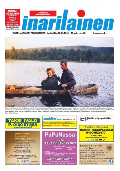 Inarilainen on Inarin ja Utsjoen oma paikallislehti sekä alueen luetuin ja luotetuin media. Paikallislehti on mainoskanava, joka tavoittaa tehokkaimmin alueen kuluttajat ja yritykset. Printtilehti ilmestyy kerran viikossa ja digitaalinen versio mahdollistaa tuoreiden uutisten seuraamisen missä tahansa oletkin.