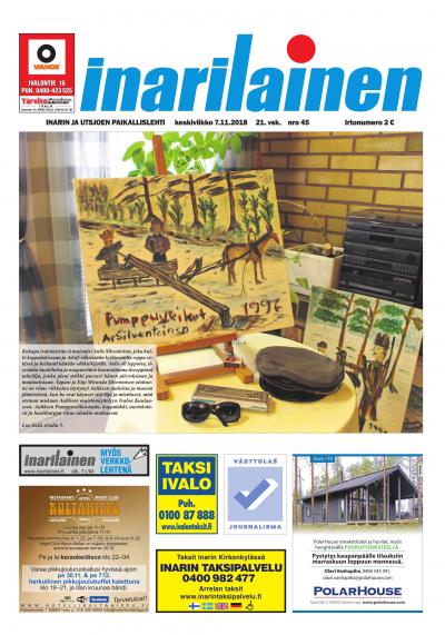 Inarilainen on Inarin ja Utsjoen oma paikallislehti sekä alueen luetuin ja luotetuin media. Paikallislehti on mainoskanava, joka tavoittaa tehokkaimmin alueen kuluttajat ja yritykset. Printtilehti ilmestyy kerran viikossa ja digitaalinen versio mahdollistaa tuoreiden uutisten seuraamisen missä tahansa oletkin.