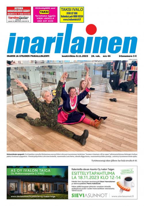 Inarilainen on Inarin ja Utsjoen oma paikallislehti sekä alueen luetuin ja luotetuin media. Paikallislehti on mainoskanava, joka tavoittaa tehokkaimmin alueen kuluttajat ja yritykset. Printtilehti ilmestyy kerran viikossa ja digitaalinen versio mahdollistaa tuoreiden uutisten seuraamisen missä tahansa oletkin.