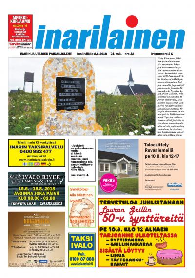 Inarilainen on Inarin ja Utsjoen oma paikallislehti sekä alueen luetuin ja luotetuin media. Paikallislehti on mainoskanava, joka tavoittaa tehokkaimmin alueen kuluttajat ja yritykset. Printtilehti ilmestyy kerran viikossa ja digitaalinen versio mahdollistaa tuoreiden uutisten seuraamisen missä tahansa oletkin.