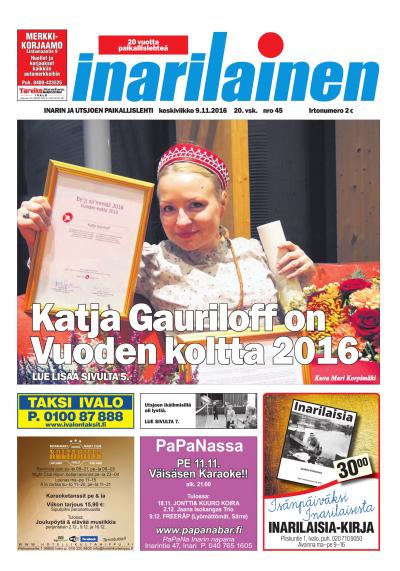 Inarilainen on Inarin ja Utsjoen oma paikallislehti sekä alueen luetuin ja luotetuin media. Paikallislehti on mainoskanava, joka tavoittaa tehokkaimmin alueen kuluttajat ja yritykset. Printtilehti ilmestyy kerran viikossa ja digitaalinen versio mahdollistaa tuoreiden uutisten seuraamisen missä tahansa oletkin.