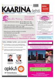 Kaarina-lehti on tehty uutisista, arjen puheenaiheista, iloisista ihmisistä, kaarinalaisista jutuista ja ohittamattomista tarjouksista ja tapahtumista.