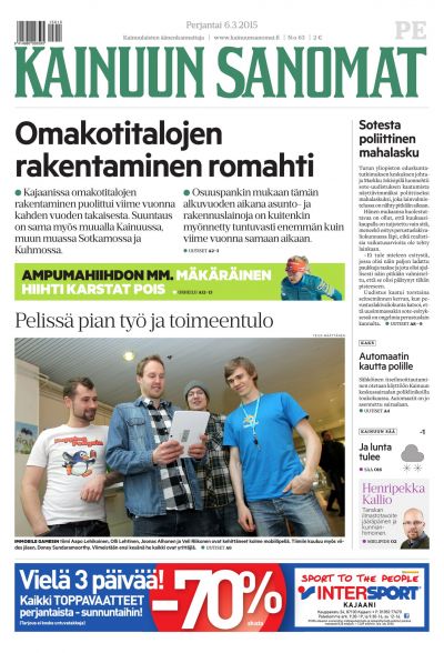 Kainuun Sanomat on elinvoimainen ja monipuolinen maakuntalehti. Tuttavallisemmin “Kainariksi” kutsuttu maakuntalehti tarjoaa kattavan kokonaistavoittavuuden sekä vahvan digitaalisen saatavuuden, mikä tekee lehdestä vahvan kanavan alueen tiedonvälityksessä. Kainuun Sanomat on koko Kainuun ääni, joka on ollut osana luomassa maakunnalle omaa identiteettiä.
