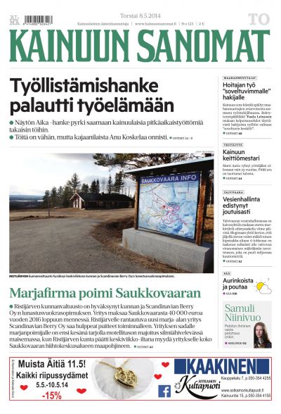 Kainuun Sanomat on elinvoimainen ja monipuolinen maakuntalehti. Tuttavallisemmin “Kainariksi” kutsuttu maakuntalehti tarjoaa kattavan kokonaistavoittavuuden sekä vahvan digitaalisen saatavuuden, mikä tekee lehdestä vahvan kanavan alueen tiedonvälityksessä. Kainuun Sanomat on koko Kainuun ääni, joka on ollut osana luomassa maakunnalle omaa identiteettiä.