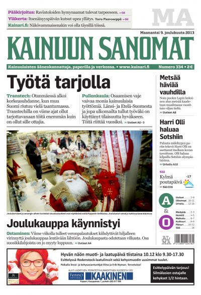 Kainuun Sanomat on elinvoimainen ja monipuolinen maakuntalehti. Tuttavallisemmin “Kainariksi” kutsuttu maakuntalehti tarjoaa kattavan kokonaistavoittavuuden sekä vahvan digitaalisen saatavuuden, mikä tekee lehdestä vahvan kanavan alueen tiedonvälityksessä. Kainuun Sanomat on koko Kainuun ääni, joka on ollut osana luomassa maakunnalle omaa identiteettiä.