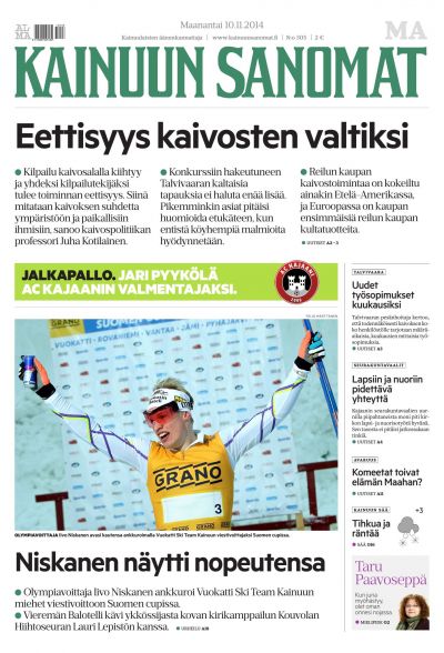 Kainuun Sanomat on elinvoimainen ja monipuolinen maakuntalehti. Tuttavallisemmin “Kainariksi” kutsuttu maakuntalehti tarjoaa kattavan kokonaistavoittavuuden sekä vahvan digitaalisen saatavuuden, mikä tekee lehdestä vahvan kanavan alueen tiedonvälityksessä. Kainuun Sanomat on koko Kainuun ääni, joka on ollut osana luomassa maakunnalle omaa identiteettiä.