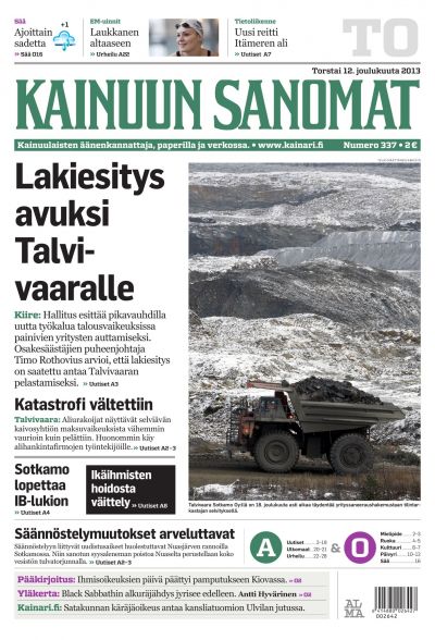 Kainuun Sanomat on elinvoimainen ja monipuolinen maakuntalehti. Tuttavallisemmin “Kainariksi” kutsuttu maakuntalehti tarjoaa kattavan kokonaistavoittavuuden sekä vahvan digitaalisen saatavuuden, mikä tekee lehdestä vahvan kanavan alueen tiedonvälityksessä. Kainuun Sanomat on koko Kainuun ääni, joka on ollut osana luomassa maakunnalle omaa identiteettiä.