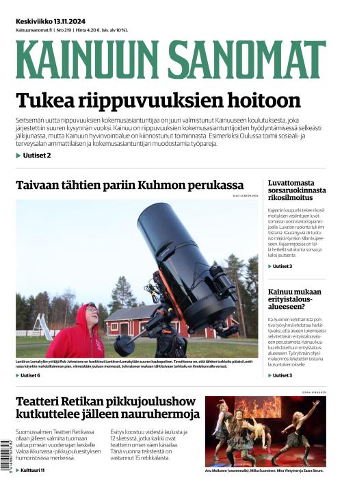 Kainuun Sanomat on elinvoimainen ja monipuolinen maakuntalehti. Tuttavallisemmin “Kainariksi” kutsuttu maakuntalehti tarjoaa kattavan kokonaistavoittavuuden sekä vahvan digitaalisen saatavuuden, mikä tekee lehdestä vahvan kanavan alueen tiedonvälityksessä. Kainuun Sanomat on koko Kainuun ääni, joka on ollut osana luomassa maakunnalle omaa identiteettiä.