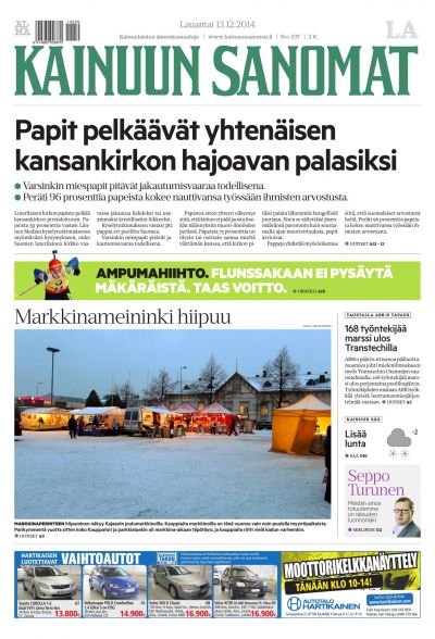 Kainuun Sanomat on elinvoimainen ja monipuolinen maakuntalehti. Tuttavallisemmin “Kainariksi” kutsuttu maakuntalehti tarjoaa kattavan kokonaistavoittavuuden sekä vahvan digitaalisen saatavuuden, mikä tekee lehdestä vahvan kanavan alueen tiedonvälityksessä. Kainuun Sanomat on koko Kainuun ääni, joka on ollut osana luomassa maakunnalle omaa identiteettiä.