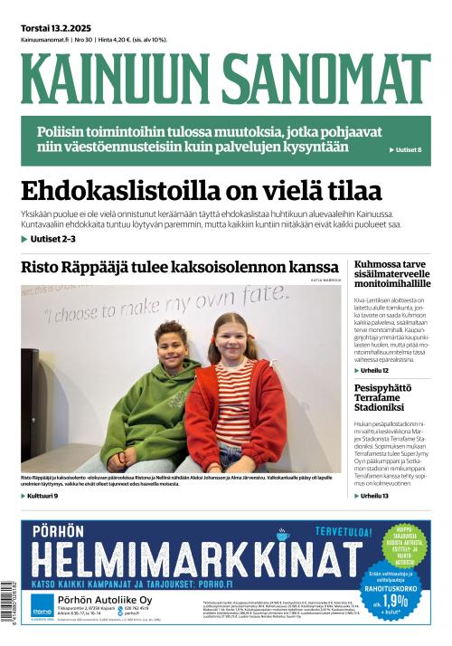 Kainuun Sanomat on elinvoimainen ja monipuolinen maakuntalehti. Tuttavallisemmin “Kainariksi” kutsuttu maakuntalehti tarjoaa kattavan kokonaistavoittavuuden sekä vahvan digitaalisen saatavuuden, mikä tekee lehdestä vahvan kanavan alueen tiedonvälityksessä. Kainuun Sanomat on koko Kainuun ääni, joka on ollut osana luomassa maakunnalle omaa identiteettiä.