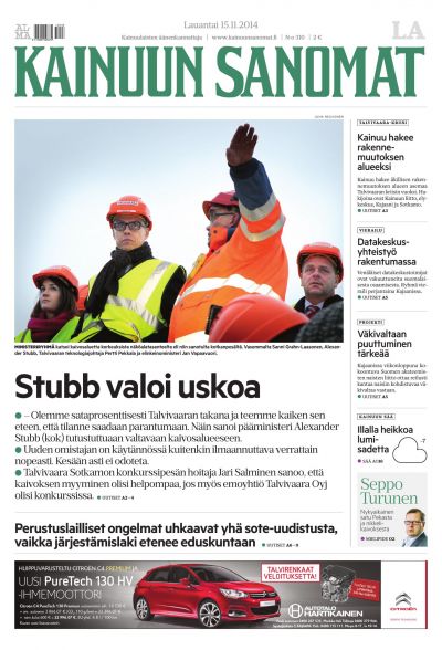 Kainuun Sanomat on elinvoimainen ja monipuolinen maakuntalehti. Tuttavallisemmin “Kainariksi” kutsuttu maakuntalehti tarjoaa kattavan kokonaistavoittavuuden sekä vahvan digitaalisen saatavuuden, mikä tekee lehdestä vahvan kanavan alueen tiedonvälityksessä. Kainuun Sanomat on koko Kainuun ääni, joka on ollut osana luomassa maakunnalle omaa identiteettiä.