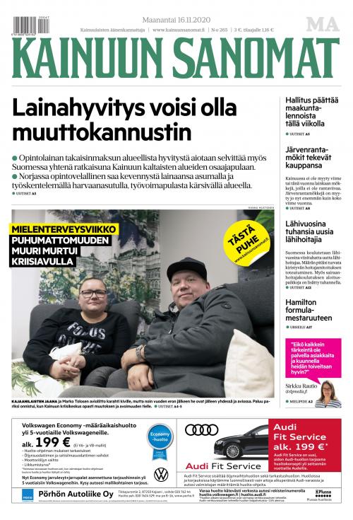 Kainuun Sanomat on elinvoimainen ja monipuolinen maakuntalehti. Tuttavallisemmin “Kainariksi” kutsuttu maakuntalehti tarjoaa kattavan kokonaistavoittavuuden sekä vahvan digitaalisen saatavuuden, mikä tekee lehdestä vahvan kanavan alueen tiedonvälityksessä. Kainuun Sanomat on koko Kainuun ääni, joka on ollut osana luomassa maakunnalle omaa identiteettiä.