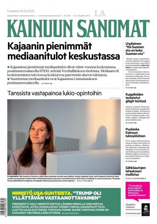 Kainuun Sanomat on elinvoimainen ja monipuolinen maakuntalehti. Tuttavallisemmin “Kainariksi” kutsuttu maakuntalehti tarjoaa kattavan kokonaistavoittavuuden sekä vahvan digitaalisen saatavuuden, mikä tekee lehdestä vahvan kanavan alueen tiedonvälityksessä. Kainuun Sanomat on koko Kainuun ääni, joka on ollut osana luomassa maakunnalle omaa identiteettiä.