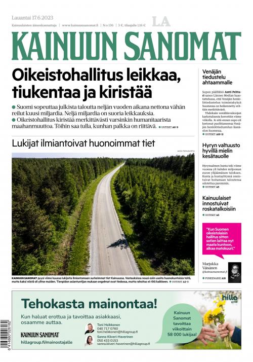 Kainuun Sanomat on elinvoimainen ja monipuolinen maakuntalehti. Tuttavallisemmin “Kainariksi” kutsuttu maakuntalehti tarjoaa kattavan kokonaistavoittavuuden sekä vahvan digitaalisen saatavuuden, mikä tekee lehdestä vahvan kanavan alueen tiedonvälityksessä. Kainuun Sanomat on koko Kainuun ääni, joka on ollut osana luomassa maakunnalle omaa identiteettiä.