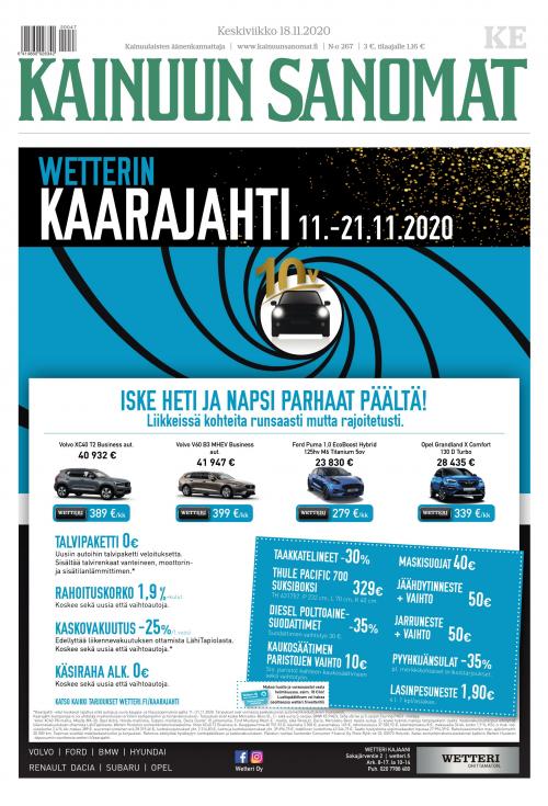 Kainuun Sanomat on elinvoimainen ja monipuolinen maakuntalehti. Tuttavallisemmin “Kainariksi” kutsuttu maakuntalehti tarjoaa kattavan kokonaistavoittavuuden sekä vahvan digitaalisen saatavuuden, mikä tekee lehdestä vahvan kanavan alueen tiedonvälityksessä. Kainuun Sanomat on koko Kainuun ääni, joka on ollut osana luomassa maakunnalle omaa identiteettiä.